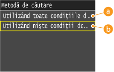 Specificaţi criteriul de căutare cu ajutorul tastelor numerice şi atingeţi <Aplicare>.
