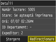 Atât timp cât nu este activată funcţia pentru Primire în memorie, documentele din memorie nu sunt şterse chiar dacă au fost redirecţionate, astfel încât aceleaşi documente pot fi redirecţionate de mai multe ori.