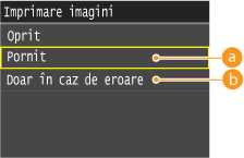 <Pornit> sau <Doar în caz de eroare>