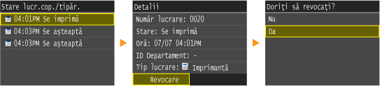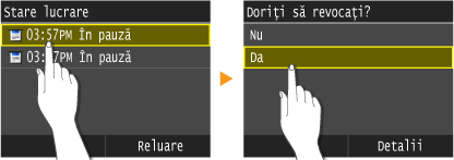 Atingeţi documentul de pe ecranul <Stare lucr.cop./tipăr.>