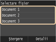 Dacă în memorie sunt documente securizate de la doi sau mai mulţi utilizatori, ecranul <Selectare utilizator> este afişat înaintea ecranului <Selectare fişier>. Atingeţi numele utilizatorului.