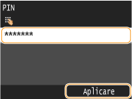Introduceţi PIN-ul folosind tastatura numerică şi apoi atingeţi <Aplicare>.