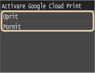 Activaţi funcţia Google Cloud Print a aparatului. De asemenea, puteţi să dezactivaţi funcţia Google Cloud Print a aparatului.