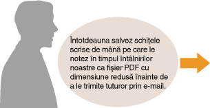 Înregistraţi adresele de mail şi formatul fişierului ca <PDF (Compact)> combinat cu <Setări favorite>. Puteţi apoi să folosiţi această combinaţie de setări de câte ori aveţi nevoie. Înregistrarea setărilor folosite frecvent la scanare (E-mail/Director partajat/Server de fişiere)