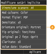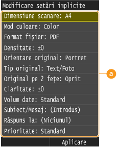 Selectaţi articolul pe care doriţi să îl setaţi şi modificaţi valoarea implicită.