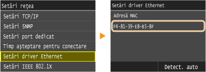 Conectarea aparatul la un hub sau bridge poate duce la erori de conexiune chiar dacă adresa IP este configurată corect. Această problemă poate fi rezolvată dacă setaţi un anumit interval înainte de începerea comunicării aparatului. Setarea unui timp de aşteptare pentru conectarea la o reţea