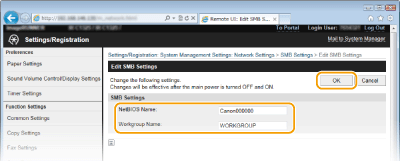 Numele grupului de lucru este un nume pentru gruparea mai multor calculatoare astfel încât funcţiile de bază ale reţelei, precum partajarea fişierelor, să fie disponibile în reţeaua Windows. Specificaţi numele grupului de lucru pentru a identifica grupul de care aparţine aparatul.