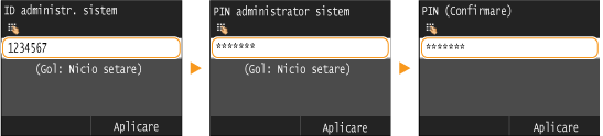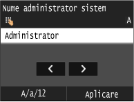 Introduceţi maximum 32 de caractere pentru numele administratorului de sistem şi atingeţi <Aplicare>. Introducerea textului