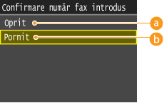 Puteţi seta ca aparatul să ceară utilizatorilor să introducă numărul de fax de două ori când este introdus folosind tastele numerice. Astfel, puteţi reduce riscul de a trimite faxuri la un număr greşit din cauza introducerii greşite.