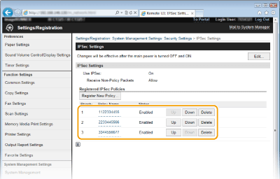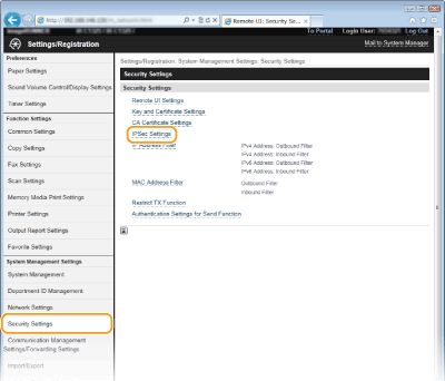 Puteţi activa sau dezactiva comunicarea IPSec din <Meniu>. Utilizare IPSec