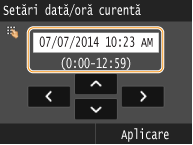 Setaţi <Fus orar> înainte de setarea datei şi orei actuale. Dacă <Fus orar> este modificată, data şi ora actuală sunt modificate corespunzător.