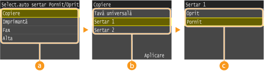 Setările marcate cu „*2” sunt disponibile numai când este ataşat dispozitivul opţional Cassette Feeding Unit sau dispozitivul Cassette Module.