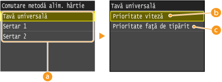 ). Selectarea automată a sertarului este activată întotdeauna pentru imprimarea pe hârtia alimentată prin tava universală.