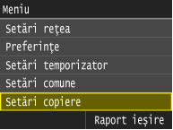 Asteriscuri (*)Setările marcate cu un asterisc (*) sunt disponibile numai când este ataşat dispozitivul opţional Cassette Feeding Unit sau dispozitivul Cassette Module.