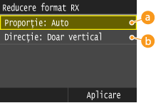 Toate setările pentru fax sunt listate cu o scurtă descriere. Setările implicite sunt marcate cu un semn (