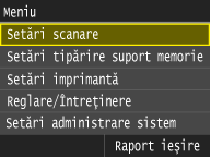 Toate setările pentru scanare sunt listate cu o scurtă descriere. Setările implicite sunt marcate cu un semn (