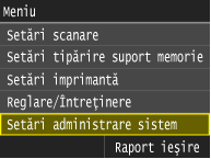 Specificaţi ID sau PIN exclusiv pentru Administratori care au drepturi de acces la <Setări reţea> şi <Setări administrare sistem>. ID este <ID administr. sistem> şi PIN este <PIN administrator sistem>. Puteţi înregistra şi numele unui Administrator.