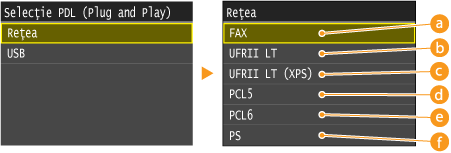 Selectaţi un limbaj pentru descrierea paginii astfel încât aparatul este detectat ca imprimantă care este compatibilă cu acel limbaj când este conectat la un calculator folosind Plug and Play.