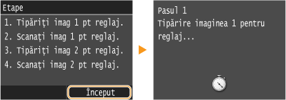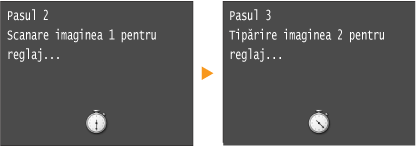 Imaginea pentru ajustare este scanată şi începe procesul de ajustare. În aproximativ 10 de secunde este imprimată imaginea pentru ajustare.