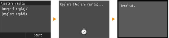 Această ajustare menţine statutul optimizat care a fost obţinut de <Reglare completă>. Nu puteţi realiza această ajustare în timp ce realizaţi anumite funcţii, inclusiv scanare şi imprimare. Dacă rezultatul ajustării nu este mulţumitor, realizaţi <Reglare completă>. Această ajustarea va fi făcută în mod automat după ce înlocuiţi un cartuş de toner.