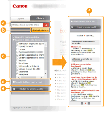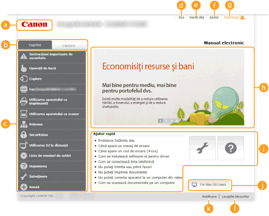 Clic pentru a afişa informaţiile despre cum să vizualizaţi Manualul electronic, cum să realizaţi o căutare şi alte informaţii.