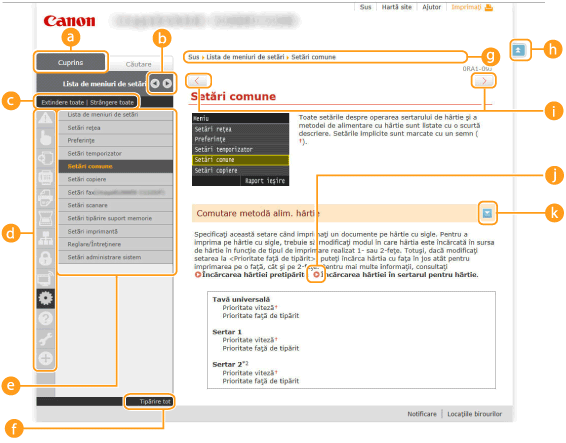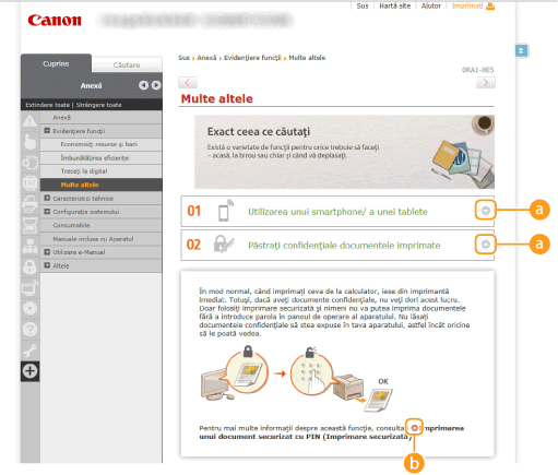 Clic pe [Extindere totală] pentru a afişa toate subsecţiunile tuturor subiectelor. Clic pe [Restrângere totală] pentru a închide toate subsecţiunile tuturor subiectelor.