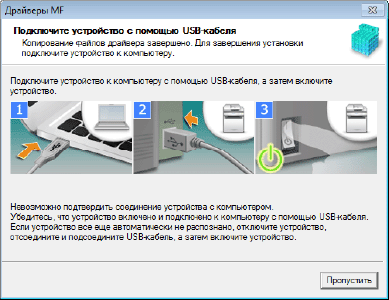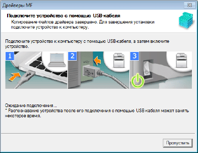Если появится следующий экран, подключите устройство к компьютеру при помощи кабеля USB → включите устройство.