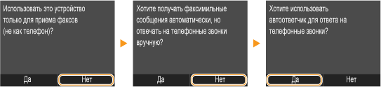 Если на экране настроек факса было выбрано <Настроить позже> (Регистрация номера факса и имени устройства), нажмите <Меню>  <Настройки факса> <Справочник по настройке факса>, чтобы открыть экран настроек факса.