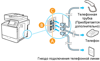 В комплект поставки этого устройства входит телефонный шнур и адаптер для подключения телефонной линии. В зависимости от страны или региона может понадобиться использовать предоставленный адаптер для подключения телефонного шнура к телефонной розетке. При использовании предоставленного адаптера следуйте указаниям ниже, чтобы произвести подключение правильно.