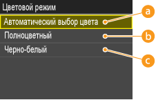 Данное устройство содержит <Автоматический выбор цвета> режим, распознающий исходник как цветной или черно-белый, затем автоматически переключающийся между многоцветным и черным режимами. Также возможно ручное переключение между <Полноцветный> и <Черно-белый> режимами при необходимости.