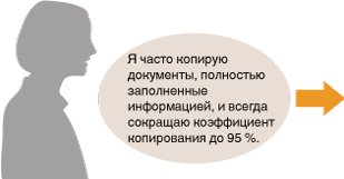 В этом случае следует задать для коэффициента масштабирования при копировании значение 95 % и установить его как параметр по умолчанию. После этого копирование можно продолжать, не изменяя коэффициент масштабирования. Изменение параметров по умолчанию