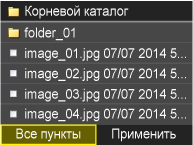 Если вы выбрали файл перед выбором <Все пункты>, можно выбрать только файлы того же формата.