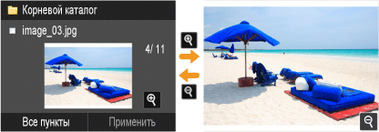 Изменить способ отображения можно в пункте <Сведения> (для имен файлов и дат изменения) и пункте <Изображения> (предварительный просмотр). Благодаря предварительному просмотру можно проверить содержимое файлов перед выбором файла для печати.