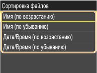 При выборе <Дата/Время (по возрастанию)> или <Дата/Время (по убыванию)>, файлы сортируются по дате и времени изменения.