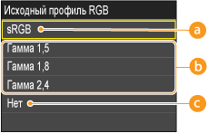 При выборе <Нет> для <Исходный профиль RGB>