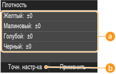 Тонкие регулировки для каждой из <Желтый>, <Малиновый>, <Голубой>, и <Черный> плотностей печати.
