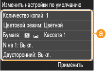 Параметры по умолчанию — это параметры, которые отображаются при включении устройства или нажатии