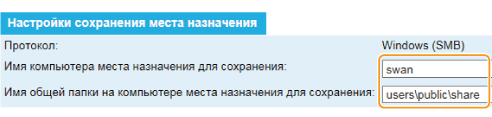Введите имя (или путь) для общей папки. Например, если общая папка является вложенной папкой с именем share и размещена в папке [Public] (Общая) на диске C (путь: C:\users\public\share), введите users\public\share.