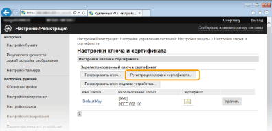 Пары ключей и цифровые сертификаты выдаются центром сертификации (CA) для использования на устройстве. Хранить и регистрировать эти файлы можно, используя Удаленный ИП. Убедитесь, что ключи и сертификаты соответствуют требованиям аппарата (