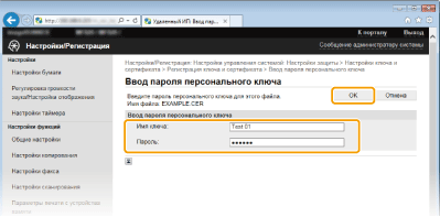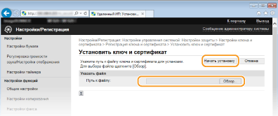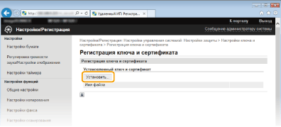 Пара ключей или сертификат CA устанавливается на аппарат.