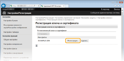 Щелкните [Регистрация ключа и сертификата...] или [Регистрация сертификата СА...].