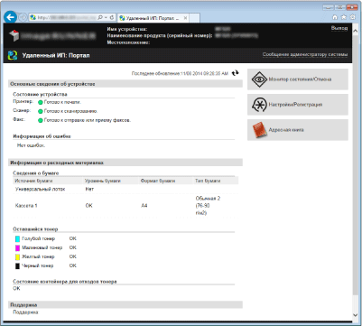 Для удаленного управления нужно ввести IP-адрес аппарата в веб-браузере и запустить Удаленный ИП. Заранее проверьте IP-адрес аппарата (