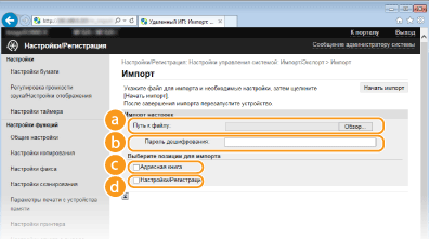Зарегистрированные данные адресной книги можно сохранить на компьютере, а сохраненные на компьютере данные адресной книги можно зарегистрировать на аппарате. Можно импортировать регистрационные сведения с данного аппарата на другие и наоборот*.