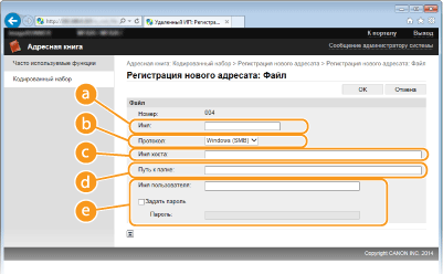 [FTP]: Выберите при использовании файлового сервера. [Имя хоста]Для использования папки с общим доступом введите путь к папке с общим доступом (до 120 символов) или введите IP адрес (пример: \\swan\share или \\192.168.2.100\share).