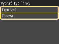 Postupujte podľa nižšie opísaného postupu na nastavenie typu telefónnej linky. Ak si nie ste istí typom telefónnej linky, ktorú používate, kontaktujte miestnu telefonickú spoločnosť. V závislosti od krajiny, kde stroj používate, nemusí byť nastavenie <Vybrať typ linky> dostupné.