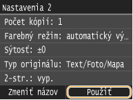 Špecifikujte nastavenia a poklepte na <Použiť>.