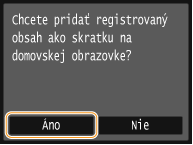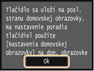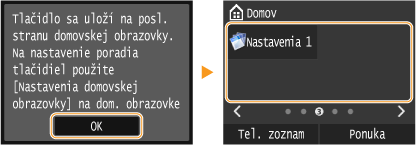 Ak je domovská obrazovka plná a nedajú sa už uložiť žiadne ďalšie nastavenia, vymažte medzery pomocou voľby <Nast. dom. obrazovky> v domovskej obrazovke alebo odstráňte uložené tlačidlá. Odstránenie tlačidiel