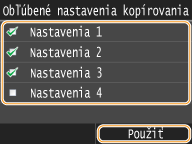 Ak vymažete často používané nastavenie, ktoré je uložené a má sa zobraziť v domovskej obrazovke pre voľbu <Kopírovať>, <Fax> alebo <Skenovať>, odstráni sa aj uložené tlačidlo domovskej obrazovky.