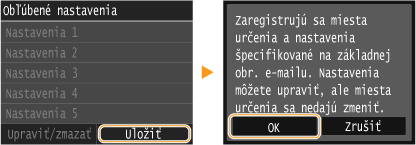 <Áno>.Ak ste v kroku 2 vybrali nastavenia, ktoré sú už uložené, zobrazí sa obrazovka potvrdenia prepísania starých nastavení.