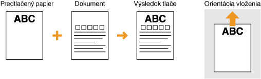 Táto časť opisuje hlavne to, ako vkladať predtlačený papier so správnou stranou a orientáciou. Ak hľadáte opis všeobecného postupu vkladania papiera do zásuvky na papier alebo do mnohoúčelového priečinka, pozrite si časť Vkladanie papiera do zásuvky na papier alebo Vkladanie papiera do mnohoúčelového zásobníka.